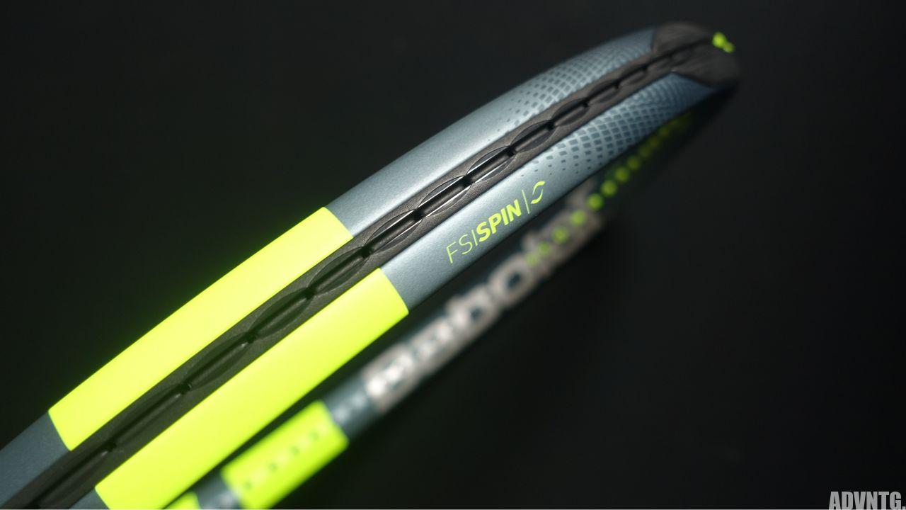 フレームのしなやか方向に変わり、ストリングピッチもやや密、グロメットも普通、ラケット自体が勝手にスピンを掛ける構造にはなってないですね。